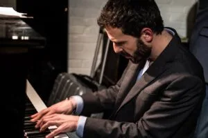 U leest het, ik kan weinig negatief zijn. Maar er is wel iets. De verhouding tussen het publiek en de artiest. Er lijkt geen scheidslijn te bestaan. Deze heren horen op een podium, wat mij betreft een onbereikbaar hoog podium. De werkelijkheid blijkt heel anders te zijn. In Brouwerij Martinus heerst bijna een huiselijke sfeer met fauteuils en bijzettafeltjes. Er lijkt geen afstand te zitten tussen publiek en artiest. Er is zelfs publiek dat wordt uitgelicht door de lampen die voor de artiesten zijn bedoeld. Een trommelfoedraal wordt op de valreep door een artiest naar het artiestenterritorium versleept om niet het risico te lopen dat het publiek die als bijzettafel gaat gebruiken. Om over een podium maar te zwijgen. Voor het concert aanvangt bestel ik drinken. Ik laat Marius Beets voorgaan. Hij is immers artiest en ik slechts publiek. “O, gaat dat hier op deze manier?” zegt de artiest. Zelfs hij vindt het normaal geworden dat artiest gelijk is aan het publiek. Door mijn aanbod bleef er nog wat tijd over. Hij gebruikt die om nog even om te spelen, op….de piano! Een bijzonder voorproefje. Zou Gijs Dijkhuizen ook saxofoon kunnen spelen? Als alle familieleden wisselen van instrument, hoe klinkt de jazz dan? Het maakt me nieuwsgierig. De jazz van vanavond staat als een huis. Dat is ook wel prettig.