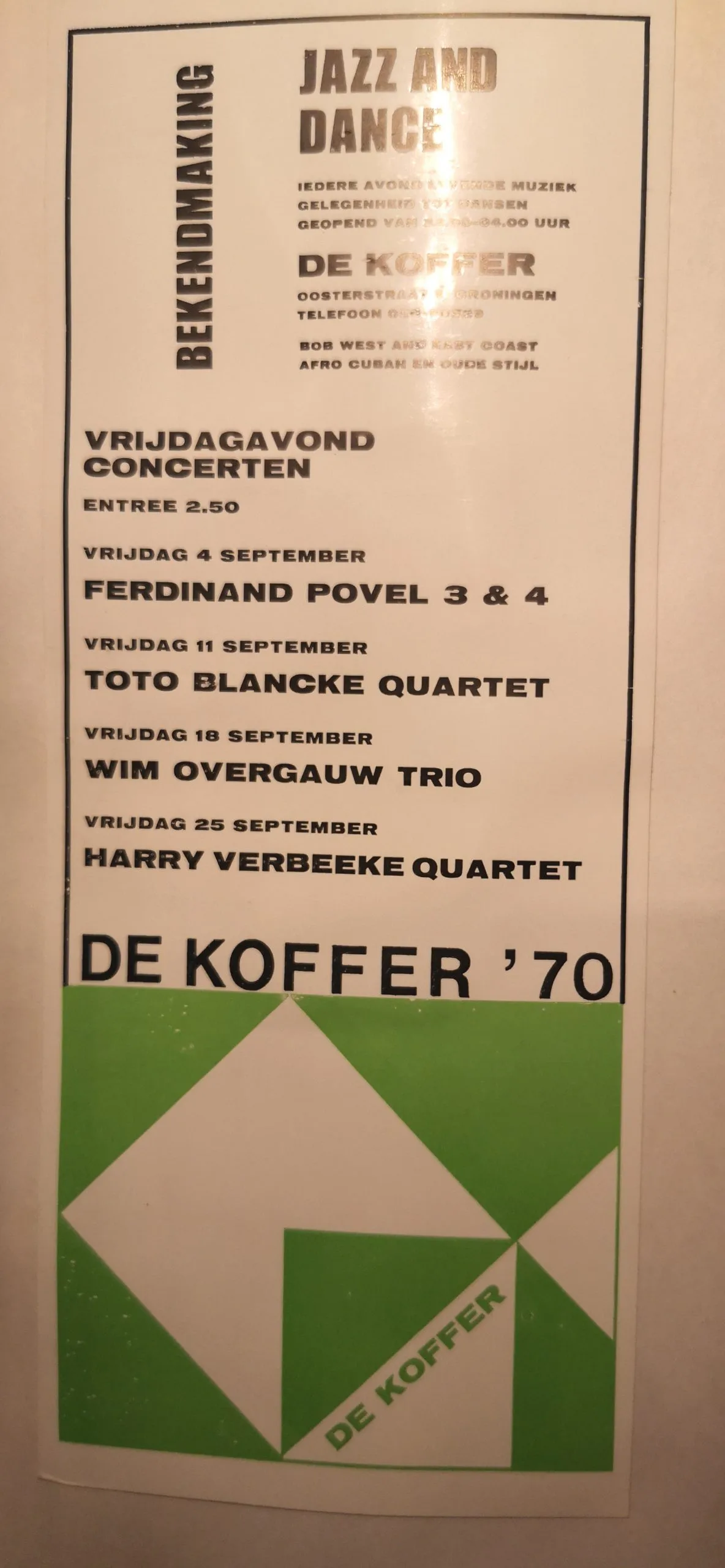 Gelijktijdig programmeert Henri ‘Hannibal” de Wolff (van de latere gelijknamige prijs) jazzconcerten in café bar De Koffer.