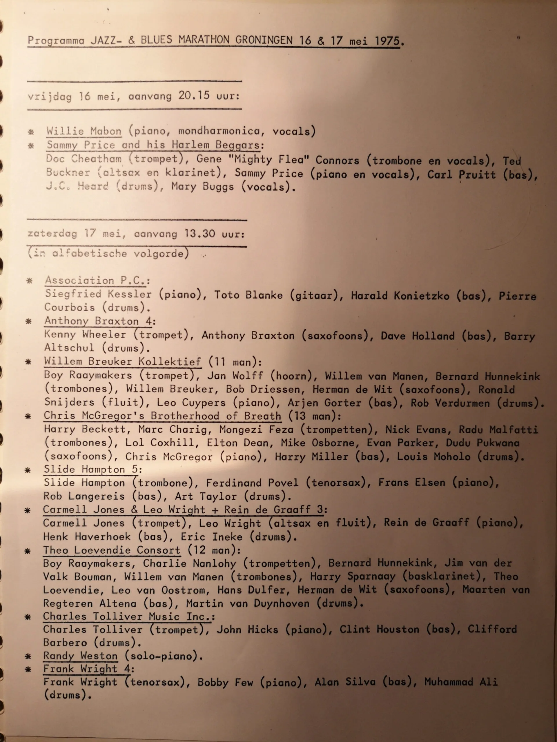 De formele start van de Stichting Jazz is 1976 maar we beginnen in 1970, of eigenlijk ergens eind jaren ’60. Helemaal kunnen we niet meer achterhalen wanneer er precies wat gebeurde. De jazzarchieven uit die tijd zijn helaas bij oud-bestuursleden door waterschade onleesbaar geworden en ze verdwenen bij het oud papier, lang geleden. Het Groninger archief bezit ongetwijfeld nog het nodige maar dat is momenteel door de Coronamaatregelen gesloten.